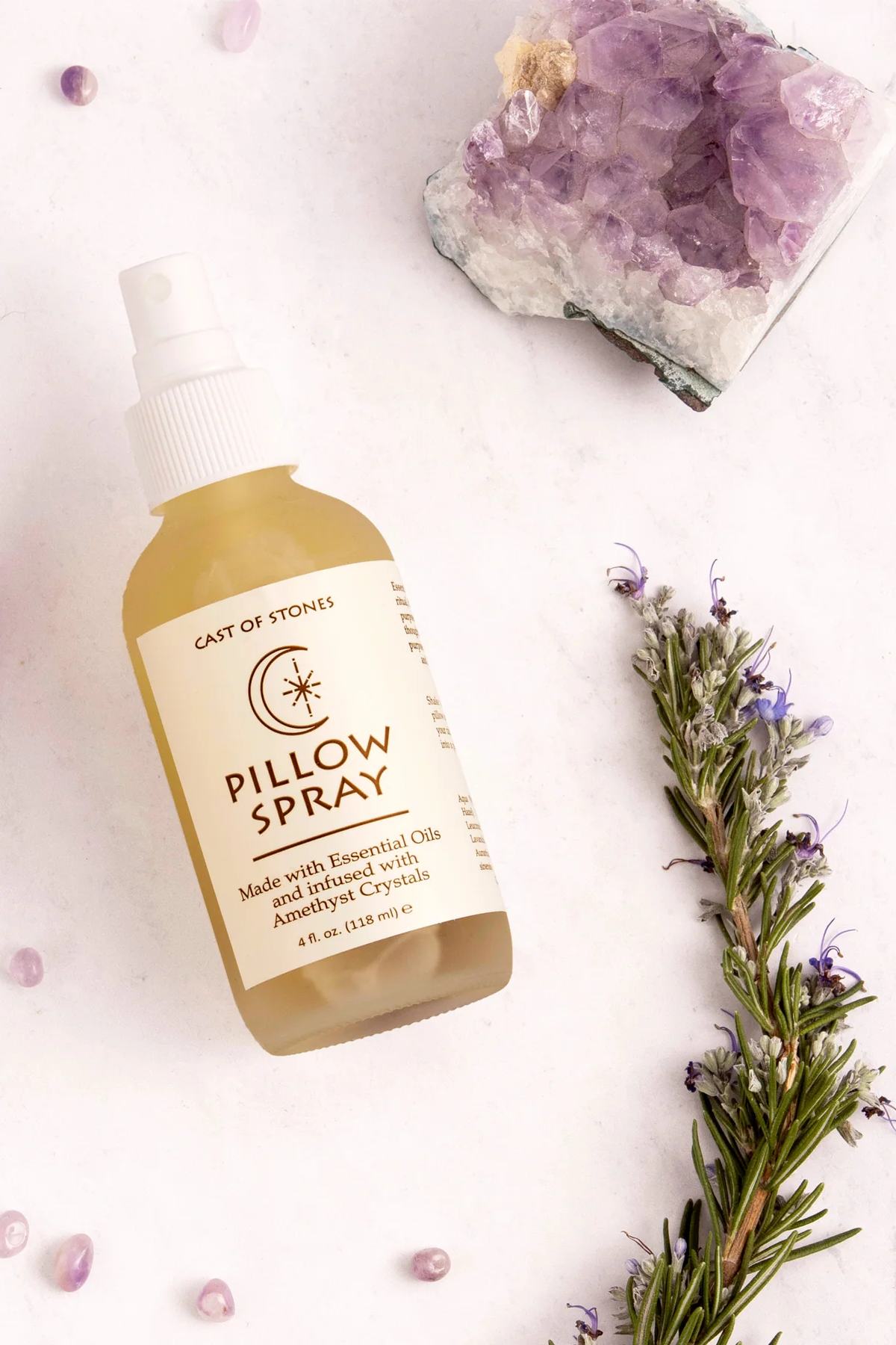 Essential oils have long been used for ritual, therapeutic, hygienic, and spiritual purposes. Cast of Stones Pillow Spray is a thoughtful blend of essential oils with the purpose to help reduce stress and anxiety, and induce a deep restorative sleep.