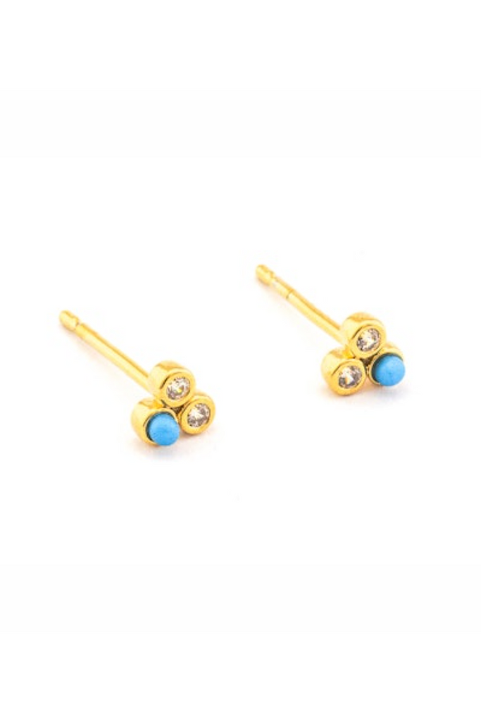 Rock your style with these Mini Turquoise and CZ cluster earrings. Featuring Turquoise stone and CZ accent, these studs add a pop of color and sparkle to any outfit. Perfect for a fun and playful look.