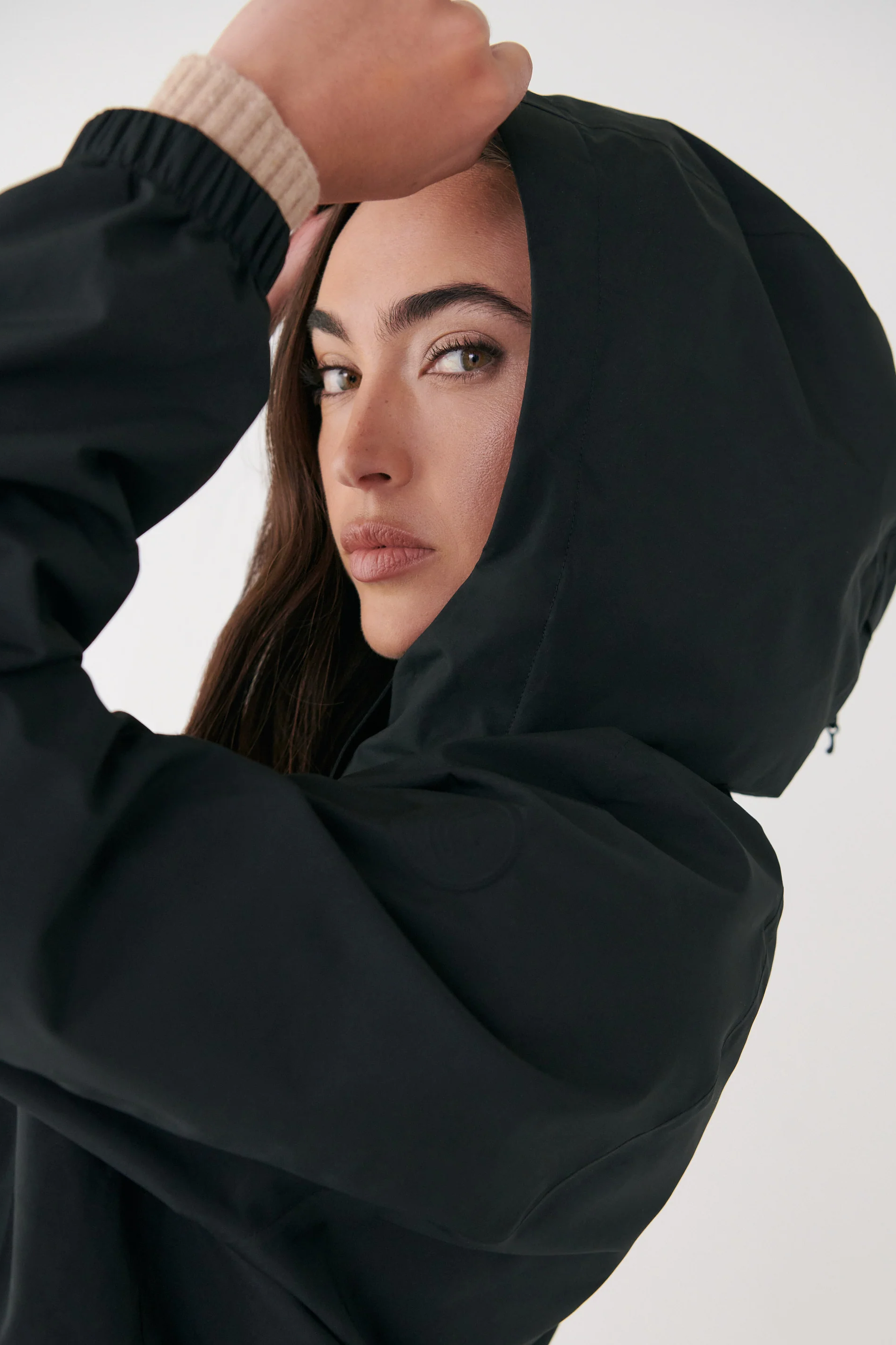 A lightweight, weather-ready outer layer designed for everyday wear. The Alizé Rain Jacket from Lole offers a boxy silhouette with elastic cuffs and side pockets for practical coverage. Its smooth, water-resistant shell and cropped length make it easy to layer over sweaters or activewear. Neutral styling and a clean finish keep this jacket versatile for commuting and weekend errands.