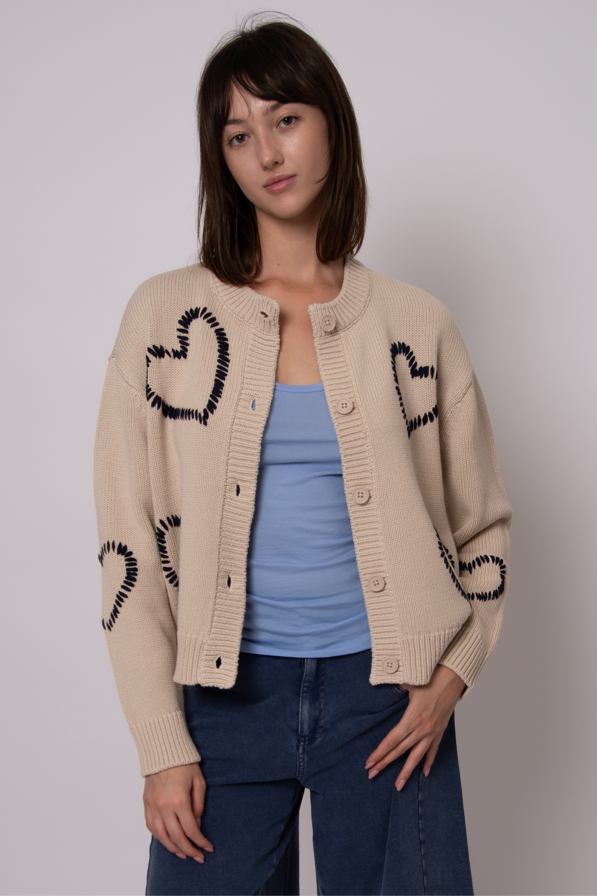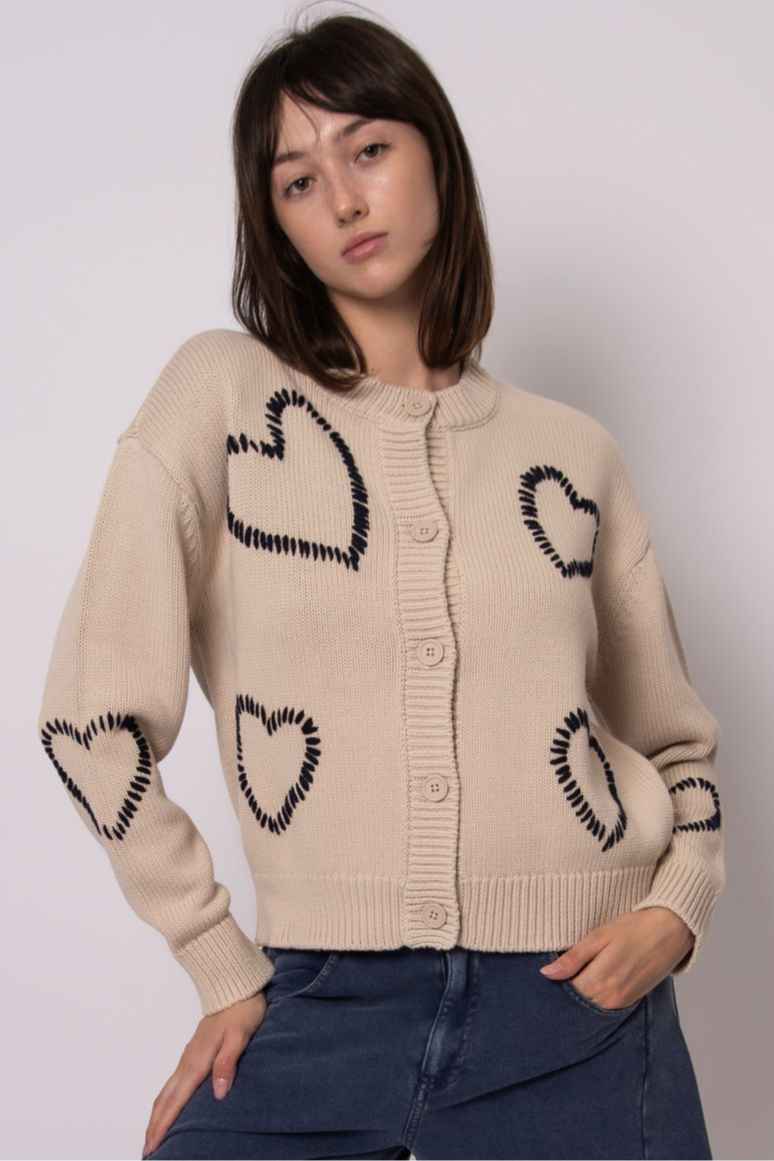 Asha Long Sleeve Heart Crew Neck Cardigan
