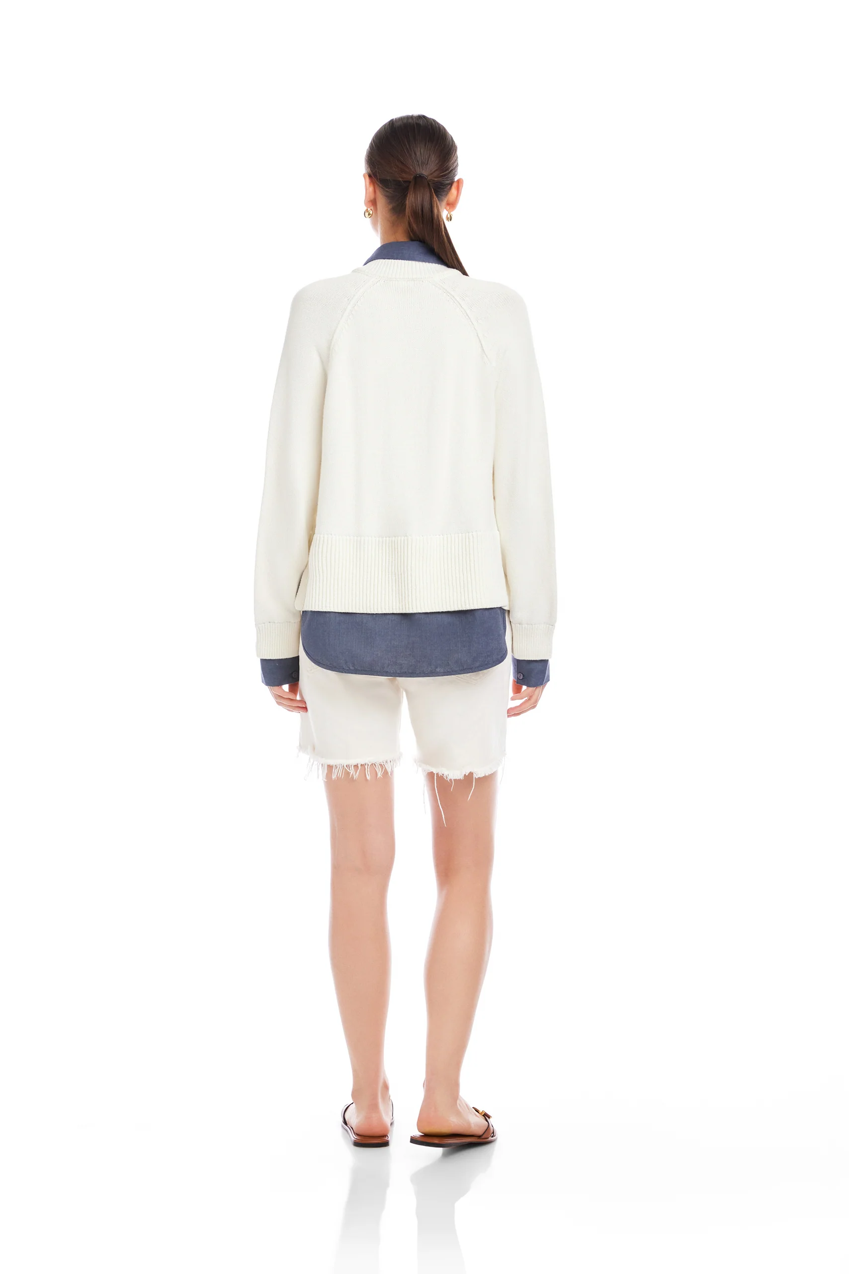 A relaxed V-neck knit designed for easy layering, the Carrie Mixed Media Sweater pairs a soft sweater body with contrasting mixed-media details at the hem and cuffs. The lightweight knit drapes slightly boxy for a modern, casual silhouette ideal for cooler beach days or weekend errands. Fifteen Twenty balances cozy comfort with a polished finish that works as a vacation staple or everyday knit.