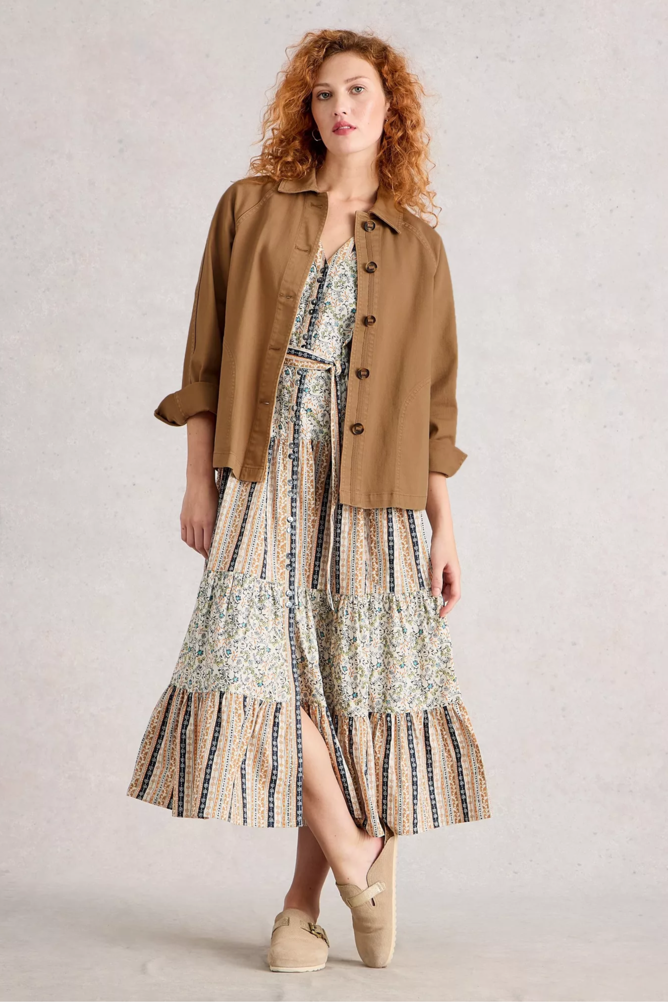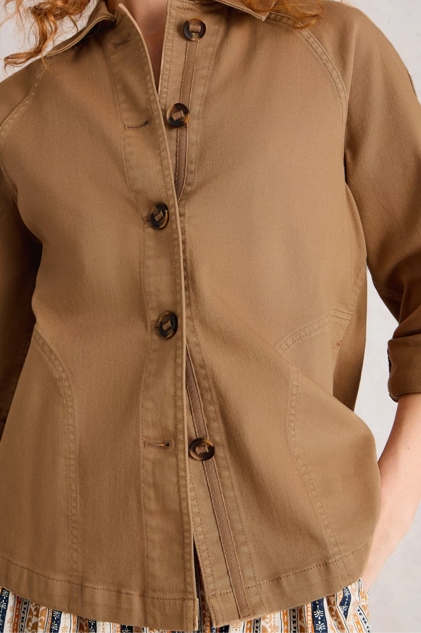 A relaxed denim jacket with classic button-front styling and a slightly cropped, hip-length silhouette. The Eden Denim Jacket from White Stuff is cut in sturdy denim and features a collar and full button placket for an effortless layered look. Rolled sleeves and a boxy fit make it an easy throw-on for casual weekends or cool evenings. Pair it with dresses or jeans to add a lived-in, versatile layer to your wardrobe.