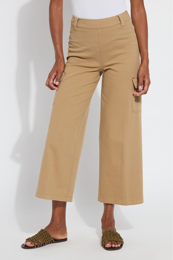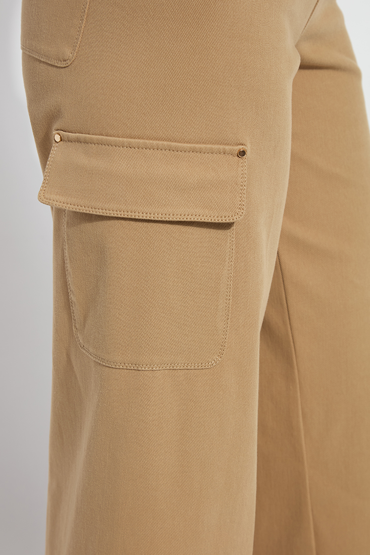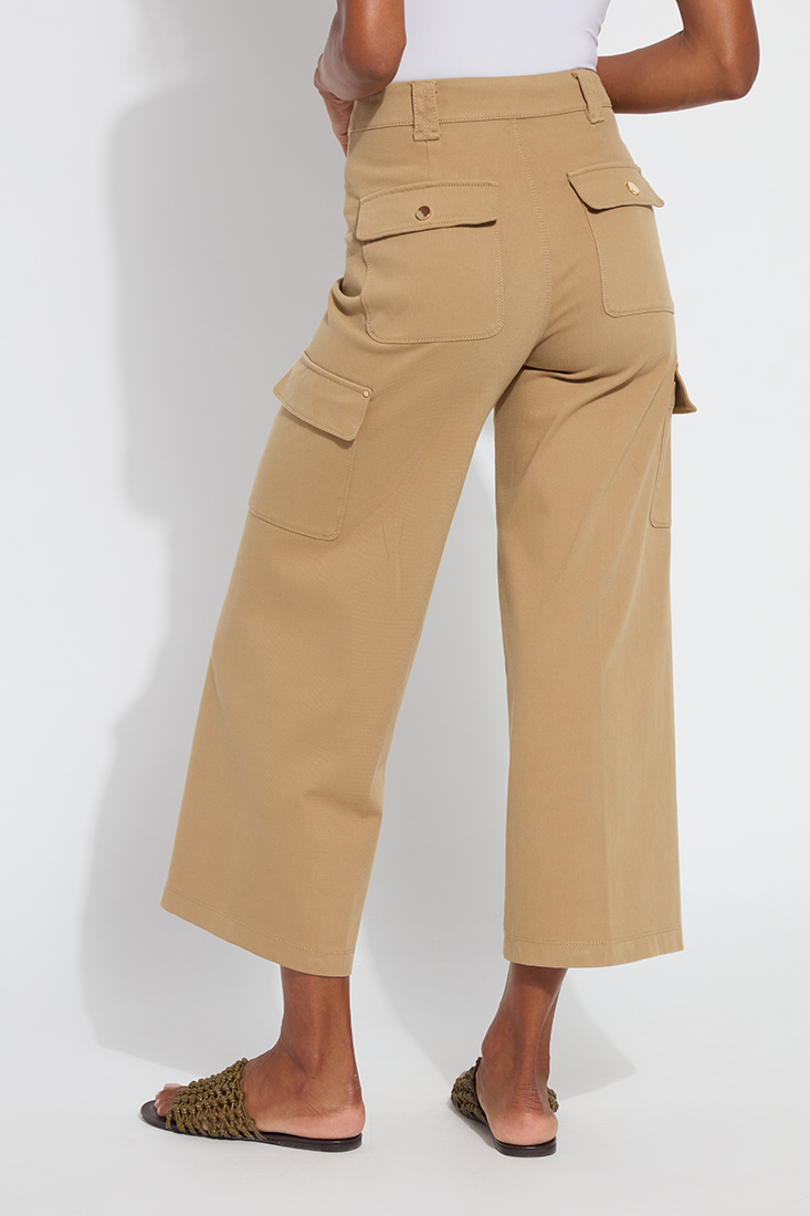 Made from 4x-stretch Knit Denim, these high-waisted, wide-leg crops feature a concealed patented waistband, back patch pockets with light gold snaps, cargo pockets with rivets and flaps, a seamed waist with wide beltloops and a clean front. Offering an extra-wide leg without side seams, the Erin West Utility Wide Leg Crop showcases dyed-to-match topstitching.