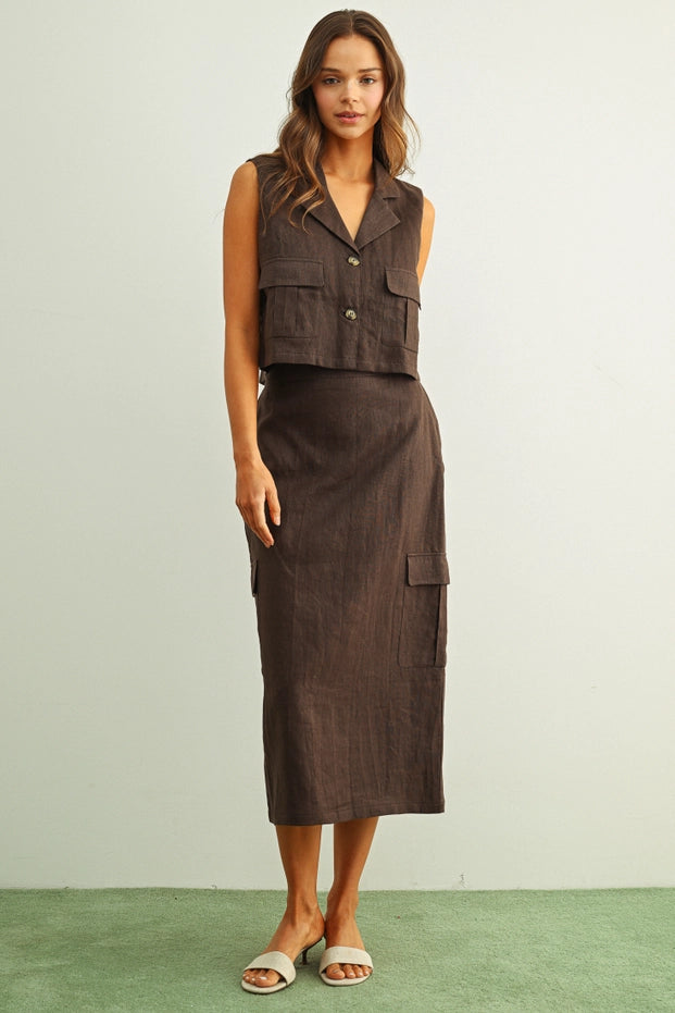 Espresso Sleeveless Linen Cargo Vest