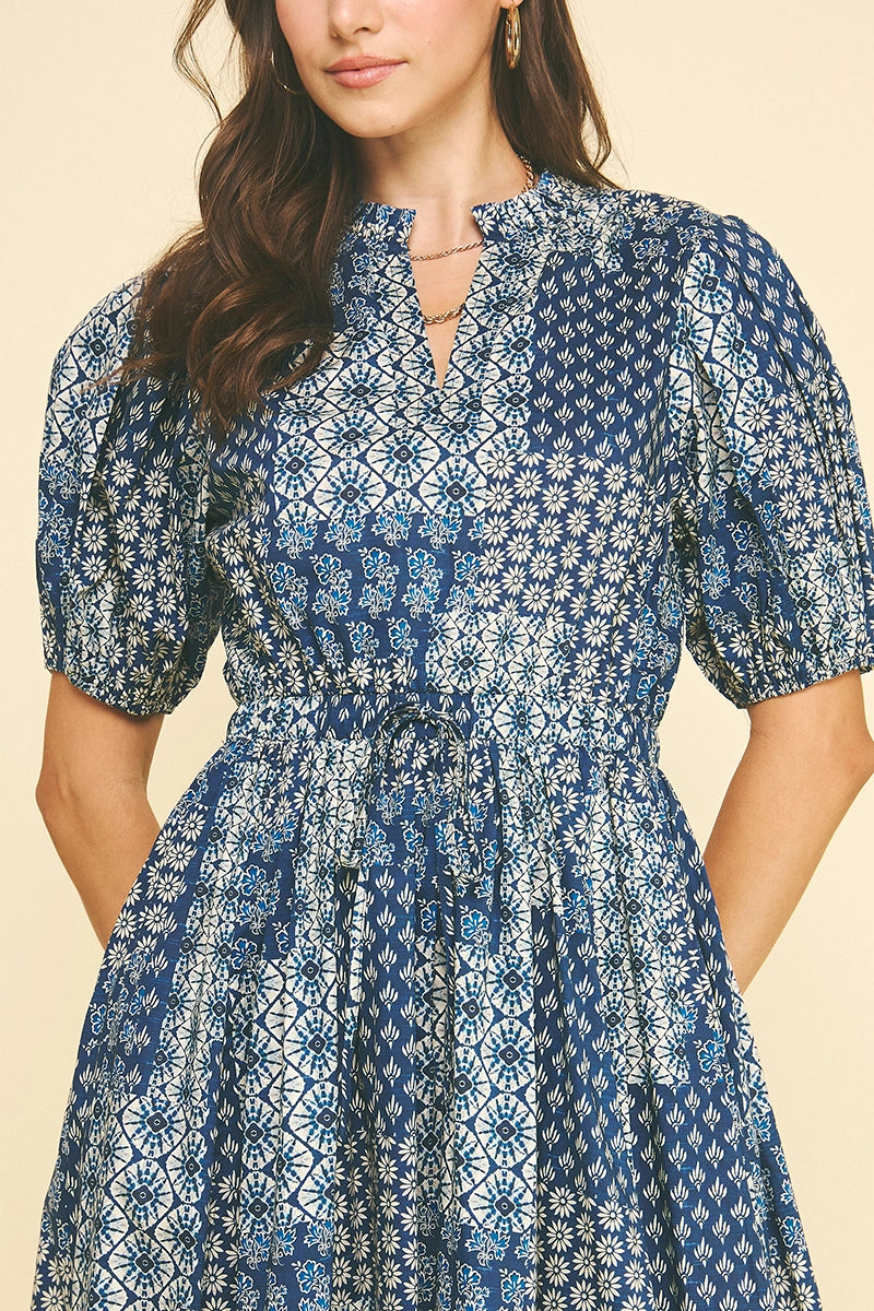 A breezy Floral Print Tiered Midi Dress with a gathered tiered skirt and puff short sleeves for a relaxed, feminine silhouette. The Pinch dress features a defined elastic waist and playful all-over floral print that reads casual and summery. Lightweight, easy-to-wear styling makes it ideal for weekend outings or vacation days. Pair it with sandals or wedges to complete the laid-back look.