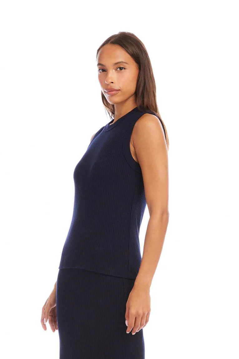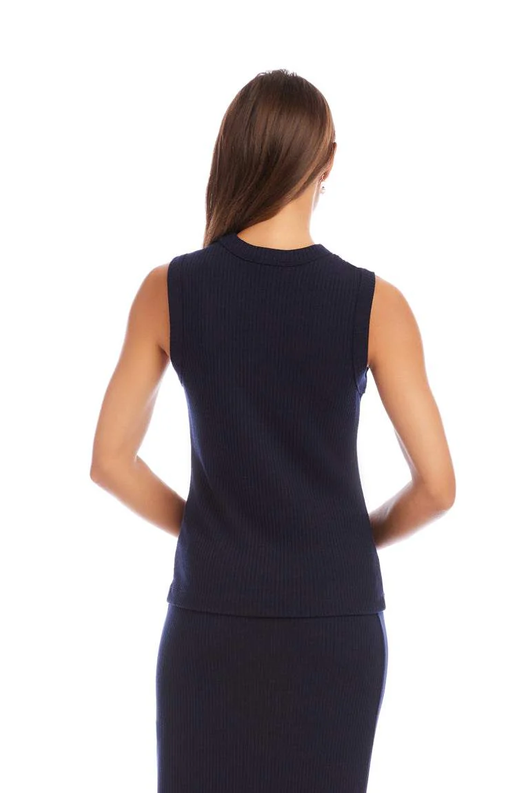 A fitted ribbed tank with a classic crew neckline and sleeveless silhouette that layers easily through the seasons. The Ribbed Tank from Karen Kane is made in a textured knit that gives subtle stretch and structure. Wear it tucked into denim or layered under blazers for an easy, polished look.