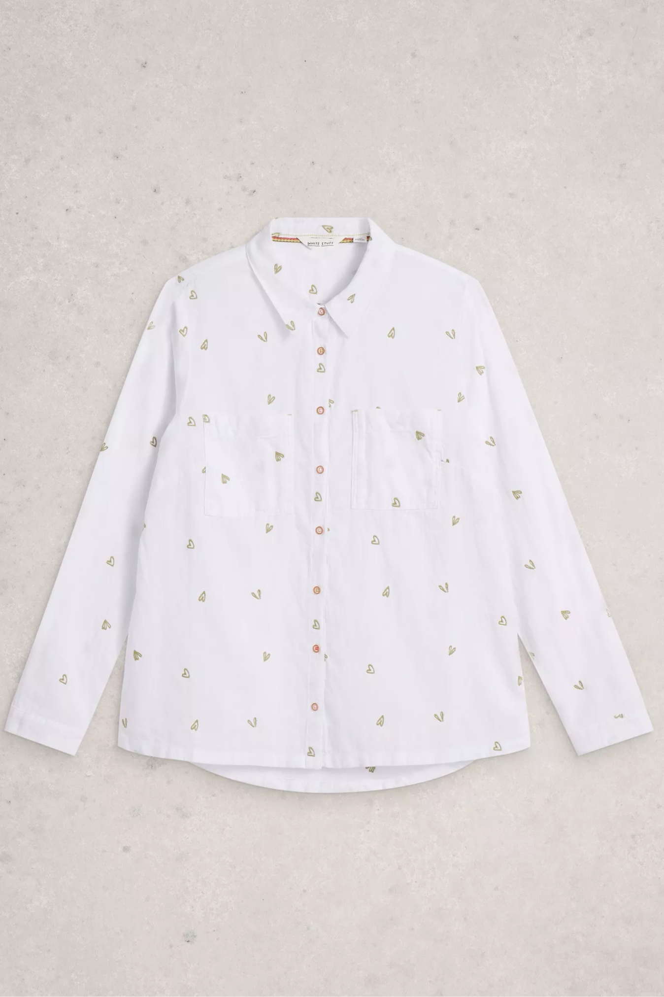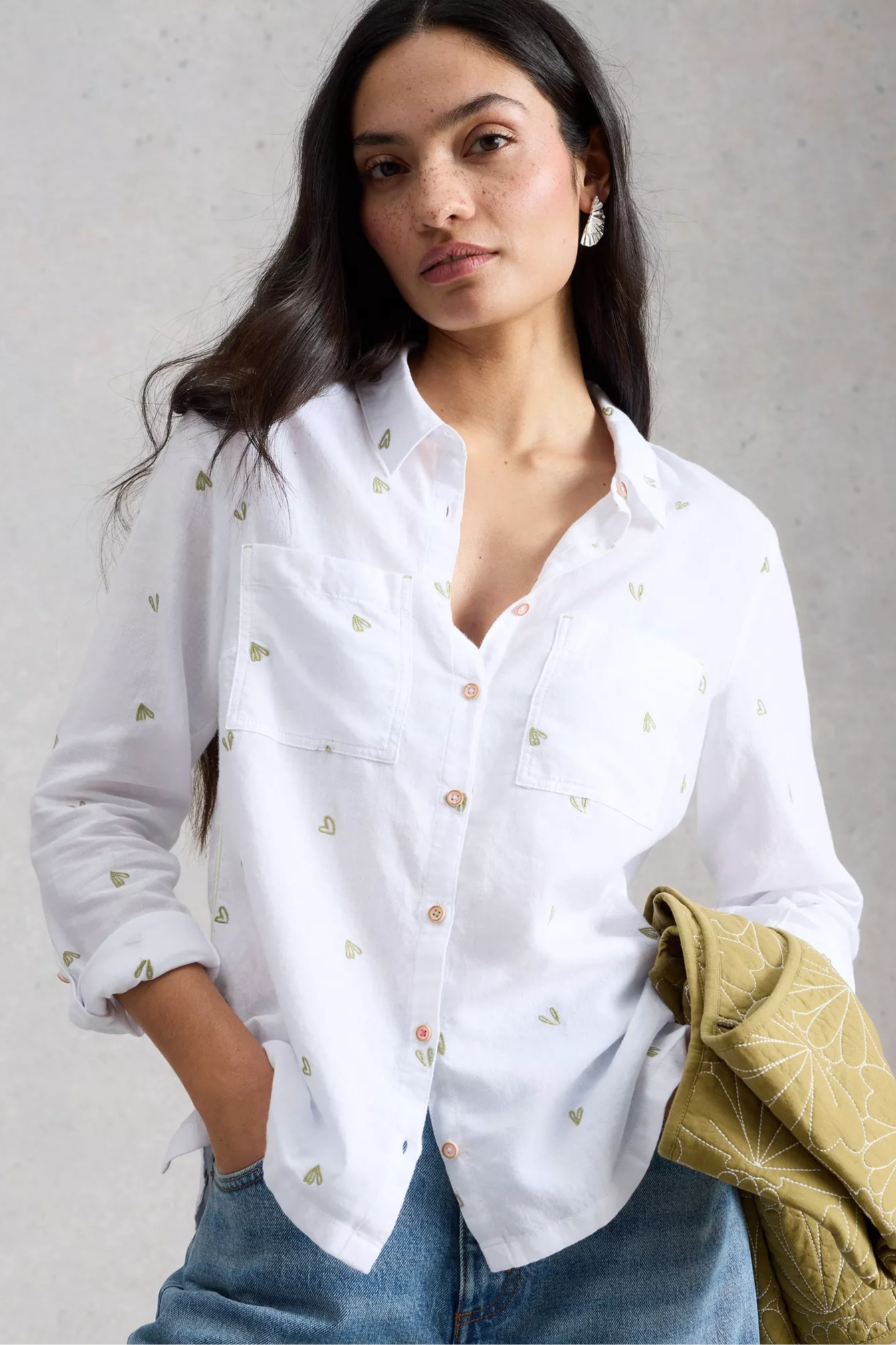 A classic button-up cut in soft organic cotton with subtle embroidered details for everyday polish. The Sophie Organic Cotton Shirt from White Stuff has a shirt collar and long sleeves, finished with front patch pockets and mother-of-pearl buttons. Lightweight and relaxed, it’s an easy layering piece for casual or work-leaning outfits.