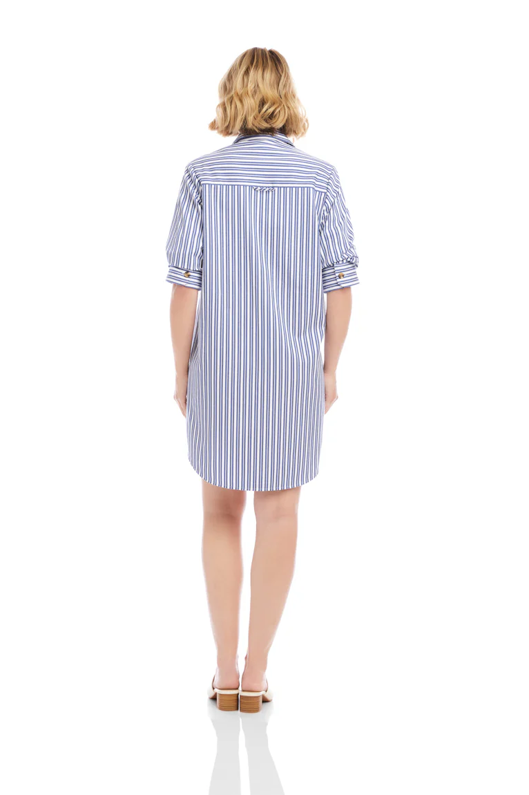 Stripe Ruched Sleeve Shirtdress