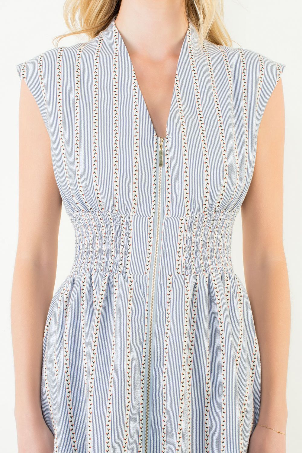 Breezy and refined, this sleeveless midi dress has a softly gathered waist and subtle eyelet-inspired stripes for a summer-ready look. The Thml Sleeveless Midi Dress from Thml pairs a relaxed A-line skirt with a slightly structured bodice for flattering shape. Lightweight fabric and a V-neckline make it ideal for warm-weather outings or a relaxed vacation dinner. Pair with sandals or wedges for an effortless, romantic finish.