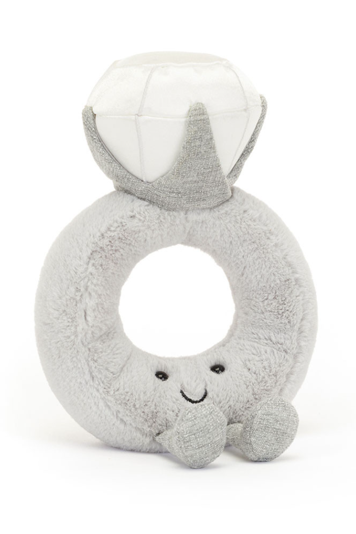 With a satin soft diamond set in glitter jersey on a ring of velvet soft silver fur, Amuseables Diamond Ring is a solitaire ready to make a statement.