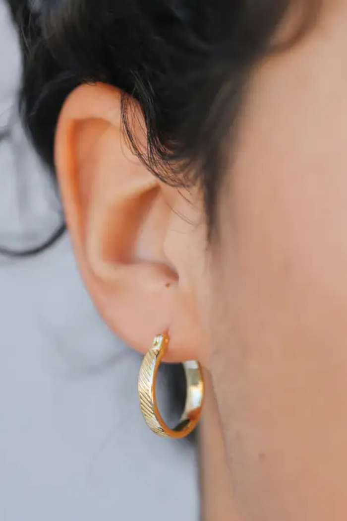 Elevate your everyday look with these timeless hoops. The subtle yet distinctive texture created by delicate diagonal lines is sure to make them your go-to accessory.